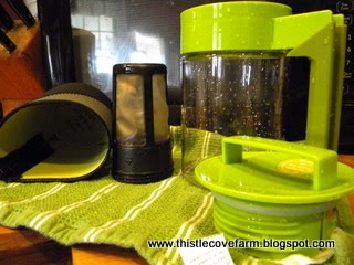 Why this pleases me, I just don’t know. It’s not like I don’t have tea pots that are cute, pretty, functional but this little number is just fine as elderberry wine. The jacket, on left, is to keep the tea hot while the strainer will hold either tea bags or loose tea and screws into the lid for safety. More importantly…there!, I finally remembered…is the way it can be used, sans strainer for presentation tea. When Dave and I were in London, we bought presentation tea from Harrods and I’ve been searching, ever since, for a clear tea pot. Yes, I could have sought out a glass tea pot on the i-net but this was more fun and certainly more serendipitous. Next thing you know, I’ll be searching out a presentation tea chest.