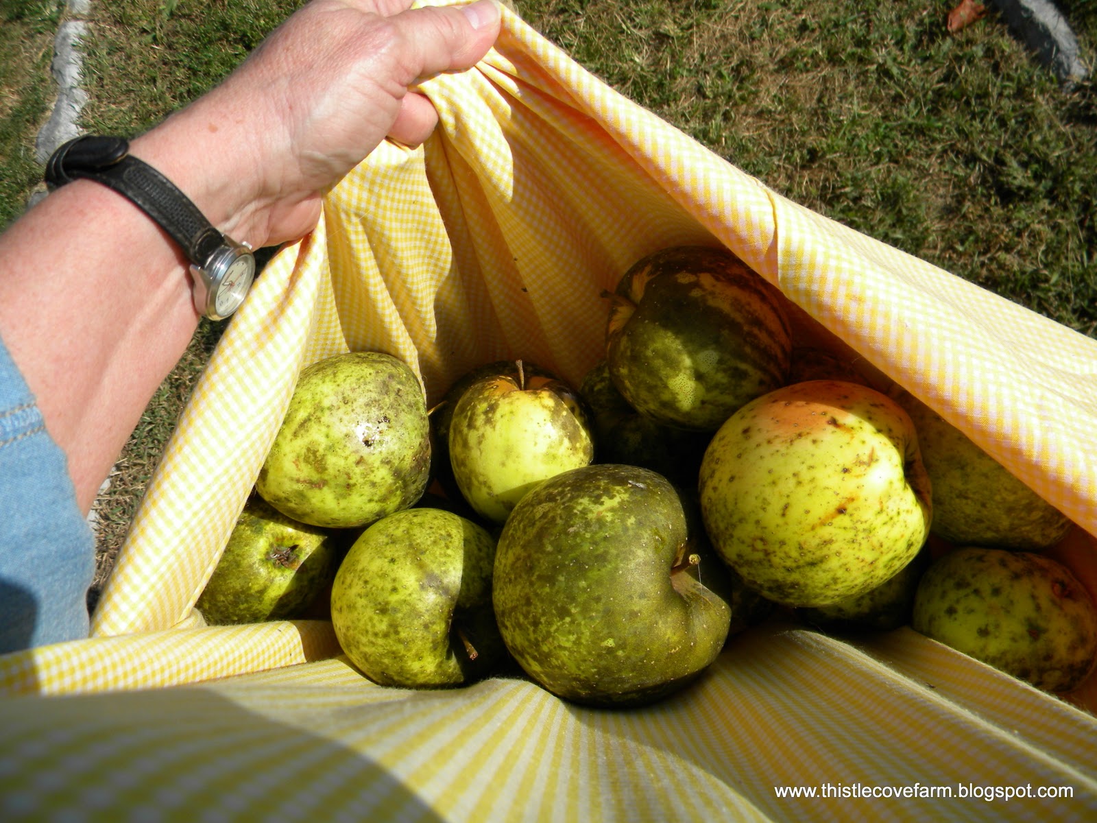 Oh yummy! Glad the sheep could enjoy a few as well. We had a nice surprise this year when an apple tree in my father-in-law's yard produced fruit for the first time. He had completely forgotten about it and so had we. I do remember now that my late mother-in-law had planted it. Needless to say, some sweet apples! I made apple butter and enjoyed some wonderful memories of dear mother-in-law.