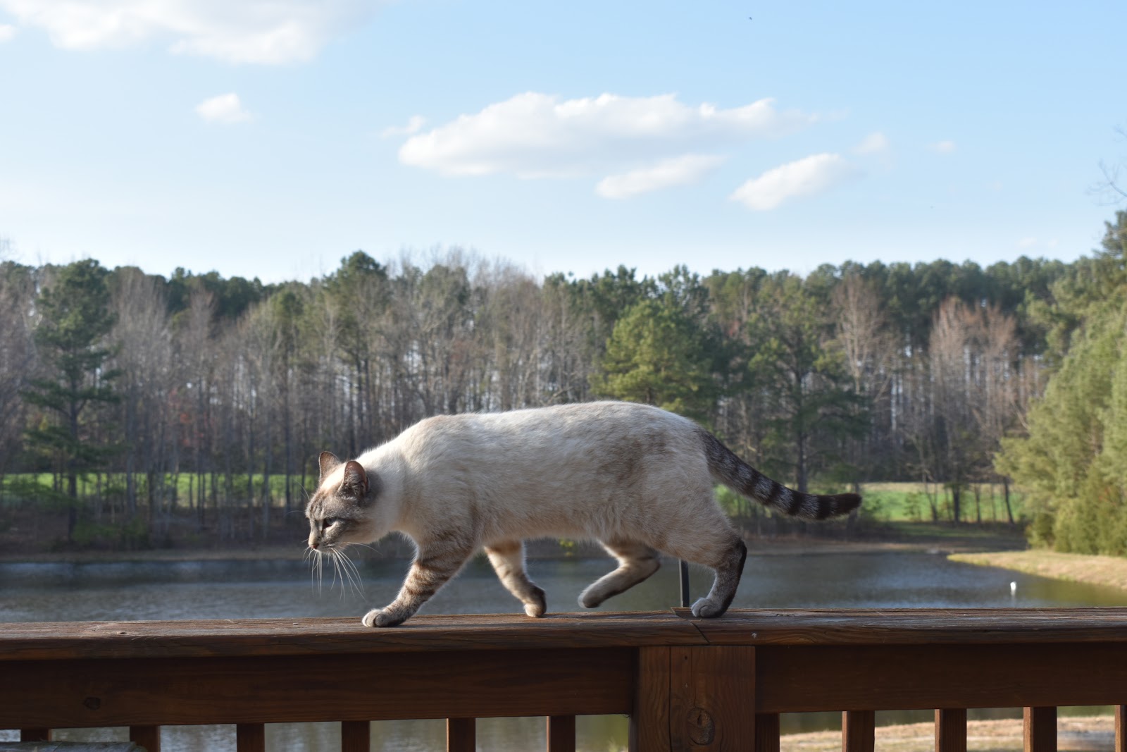 Ahhh…..the pond lake. What a treasure. Screening in the deck? Genius! The abandoned cats – how that grieves me…. How come people think cats can fend for themselves??